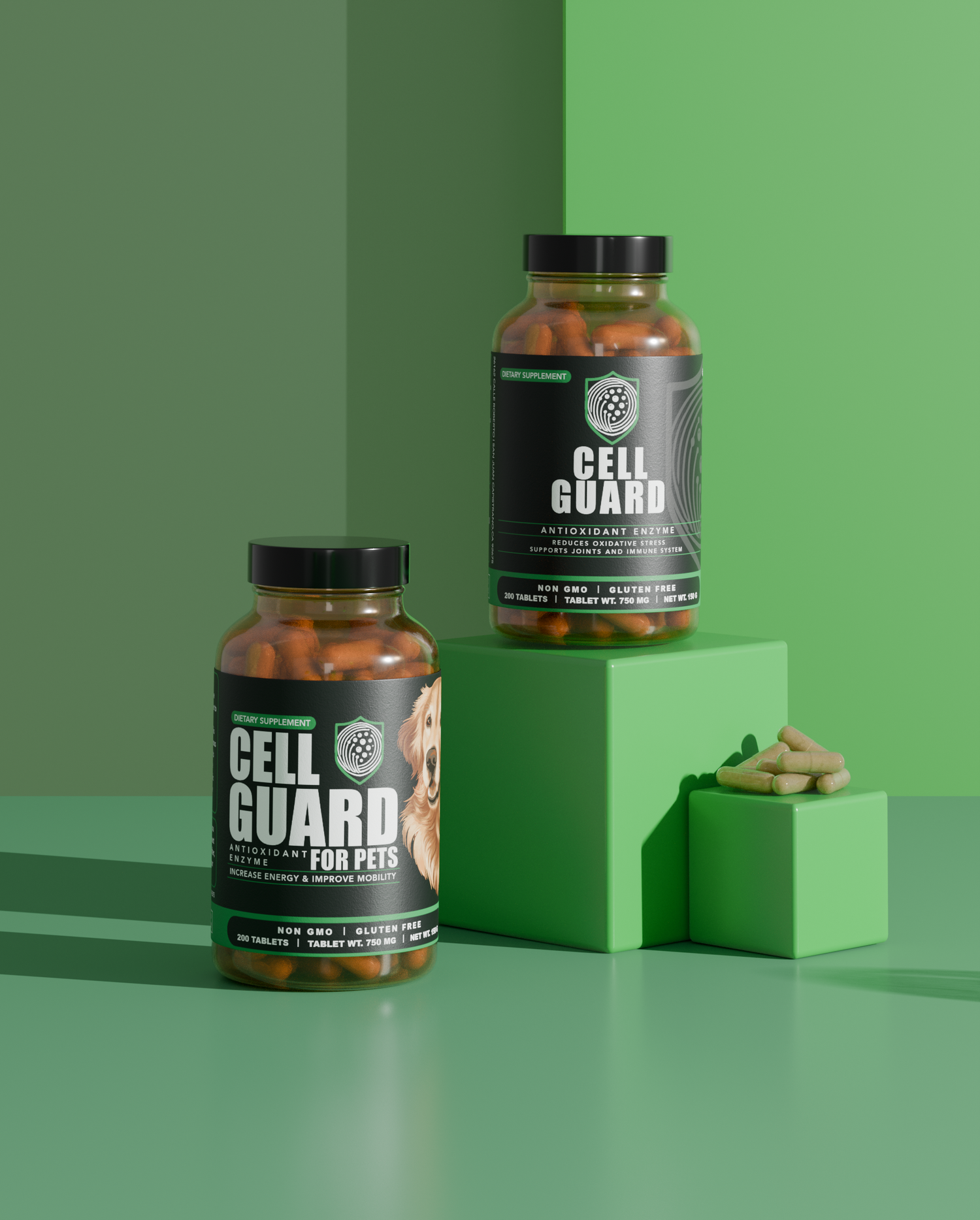 Cell Guards' proven to increase pet life span, boost energy, and provide joint relief to older dogs among countless other positive results